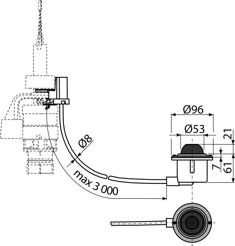 - Шланг длиной 3 м для подключения кнопки к выпускному механизму