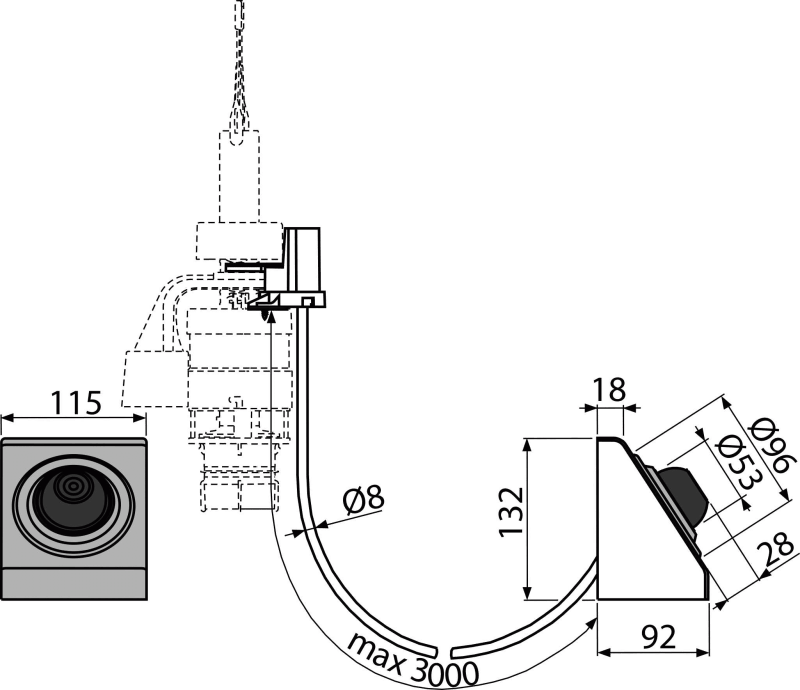 - Можно разместить на расстоянии до 3 м от унитаза