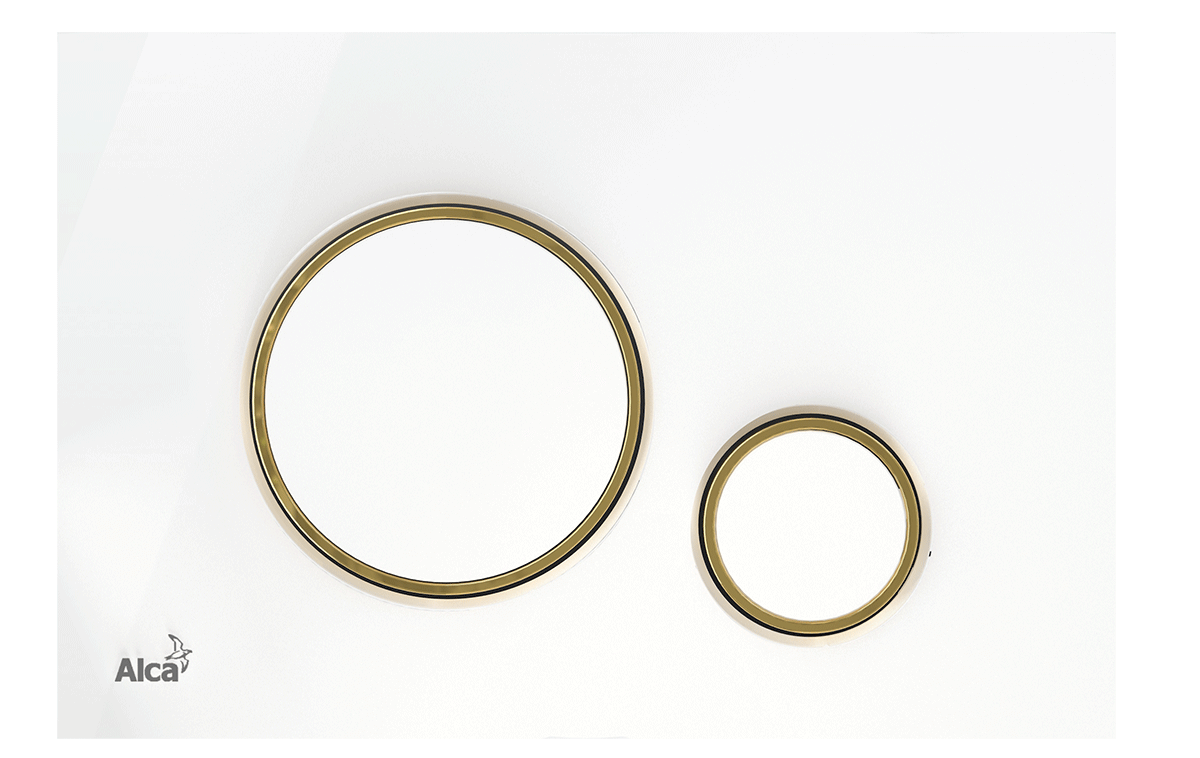 Кнопка управления ALCAPLAST для инсталляции, белый-глянец/золотой-глянец