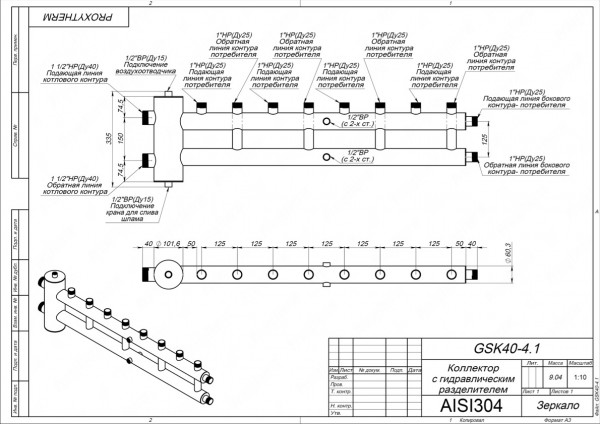 Гидрострелка + коллектор отопления из нержавеющей стали GSK