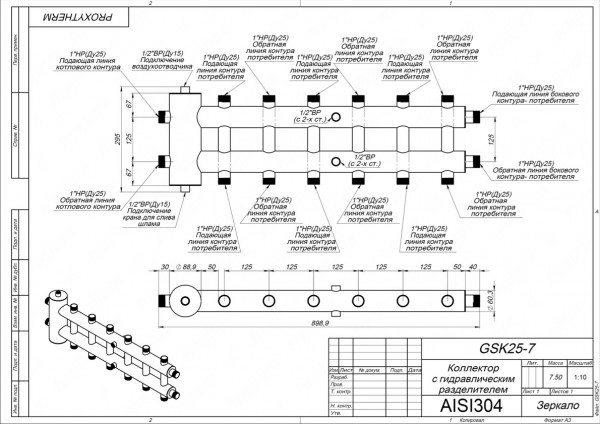 Коллектор с гидроразделителем ПРОКСИТЕРМ из нерж. стали GSK 25-7 60 кВт 7 контур