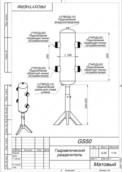 Гидравлический разделитель (гидрострелка) GS 50