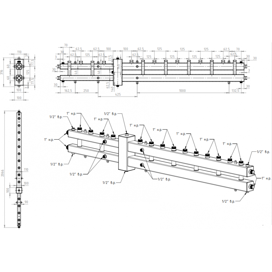 Коллектор с гидроразделителем СЕВЕР из стали-BKM6
