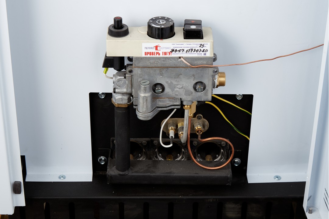 Котлы ARIDEYA серии КЧГО изготовлены на основе чугунного теплообменника российского производства толщиной 4 мм. и оснащены оригинальными компонентами газогорелочного устройства и газовым клапаном итальянского концерна SIT Group, а также инжекционной микрофакельной горелкой Worgas (Италия).