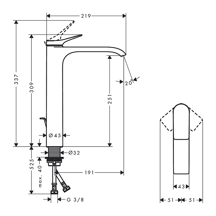 Hansgrohe Vernis Смеситель для раковины, на 1 отв., высокий, цвет: белый матовый