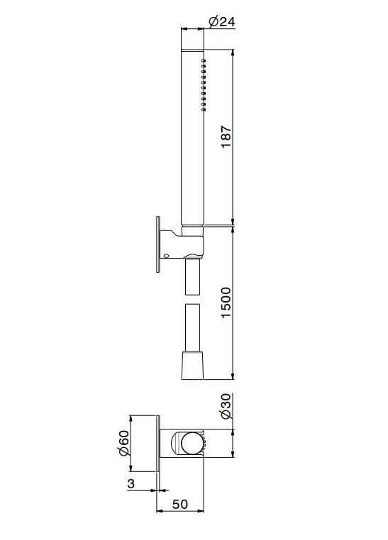 Ручной душ OLE с держателем для лейки и шлангом, без вывода для подачи воды, матовый черный