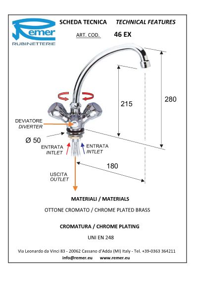 Смеситель для кухни + выход для АПМ REMER 46EX