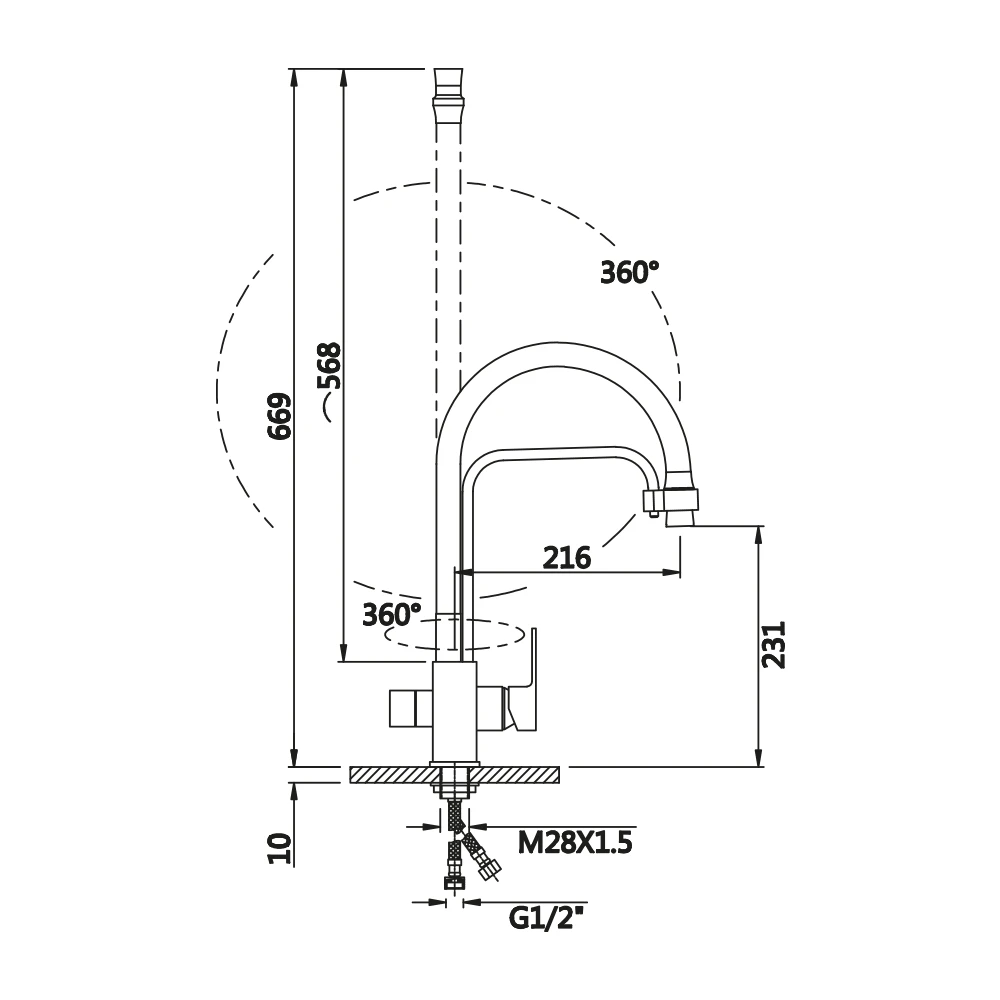Смеситель для кухни с фильтром, с гибким изливом VIEIR V15005F