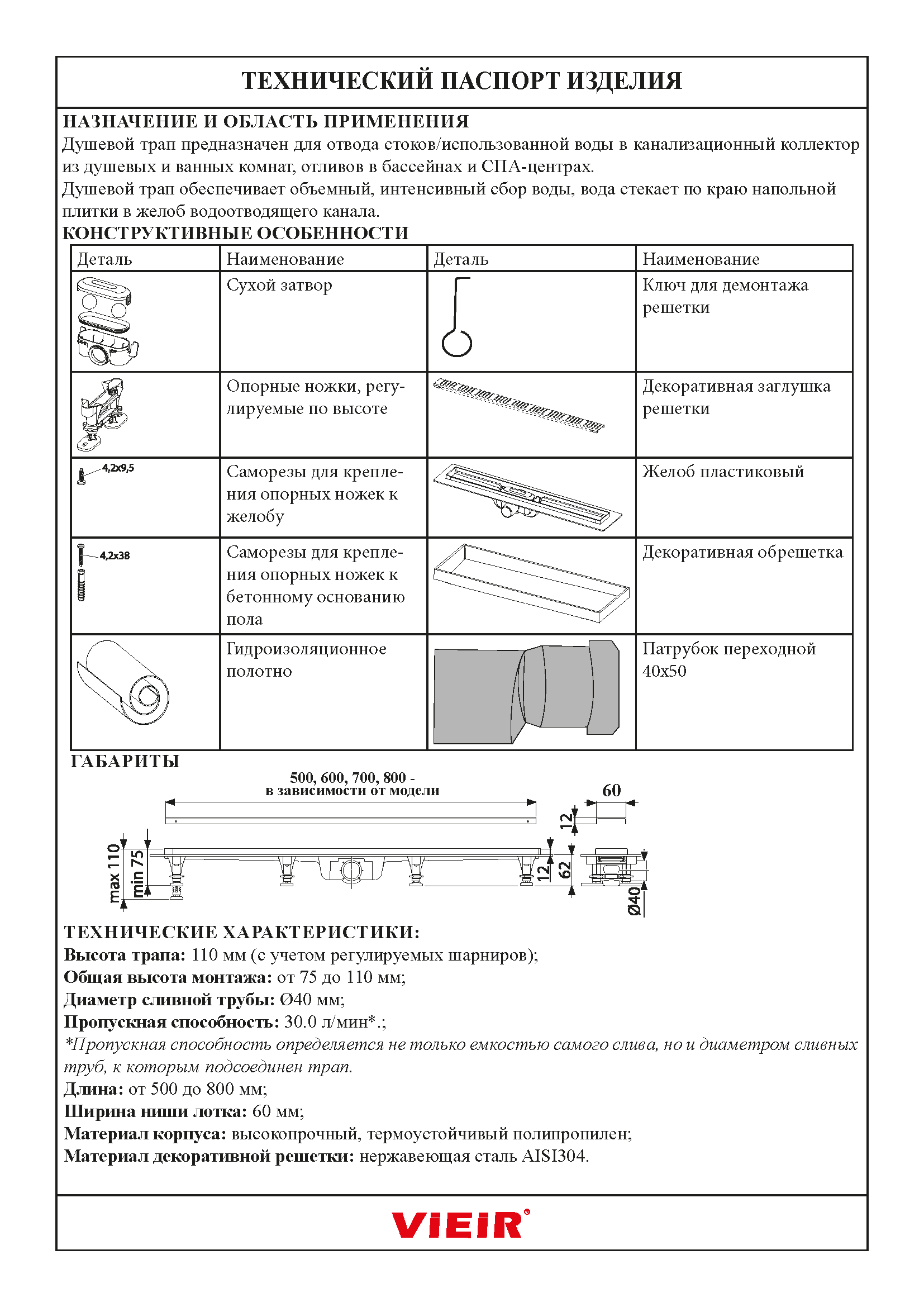 Трап VIEIR DL-P |