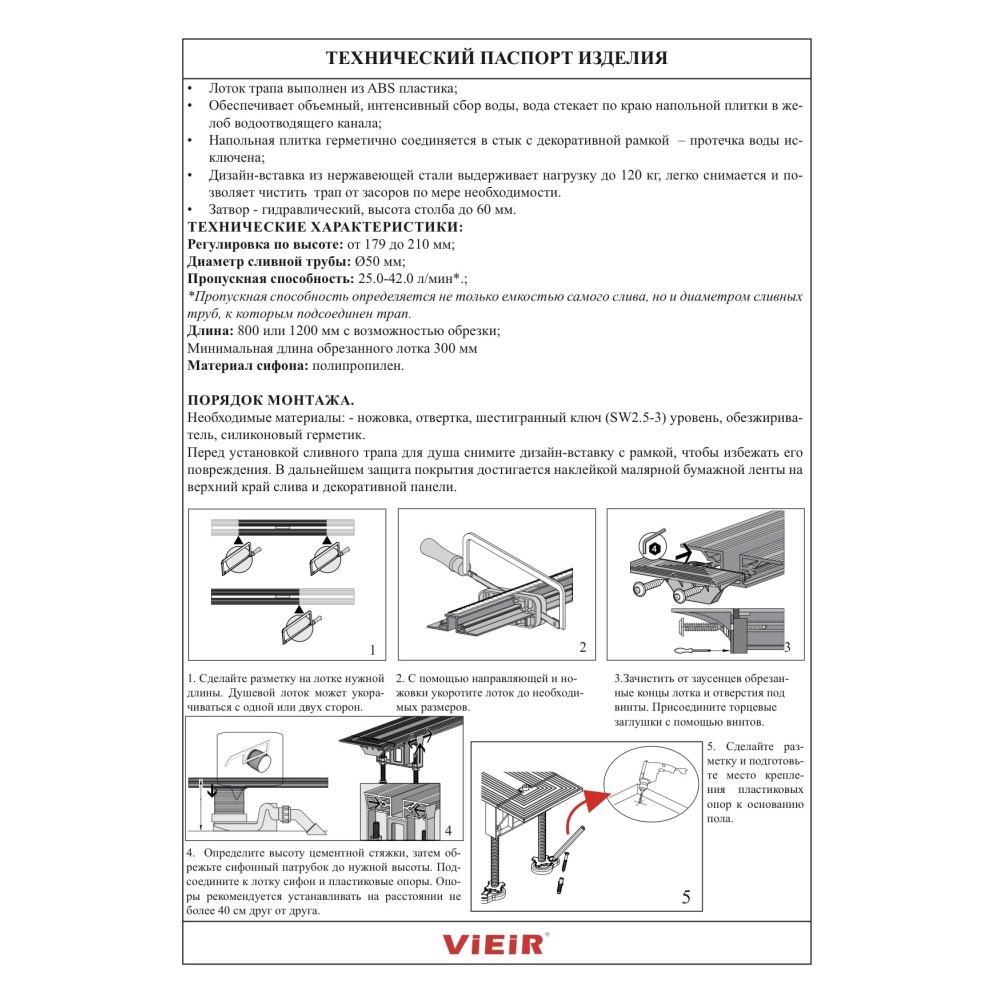 • Дизайн-вставка из нержавеющей стали выдерживает нагрузку до 120 кг, легко снимается и позволяет чистить трап от засоров по мере необходимости