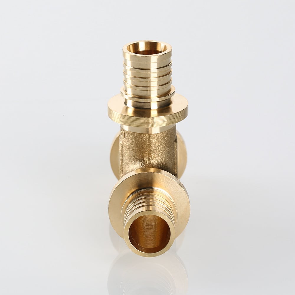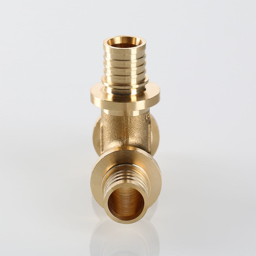 Надвижной тройник VTm.431.BG – трехсторонний латунный универсальный аксиальный фитинг для монтажа неразъемных соединений труб из PE-Xa.