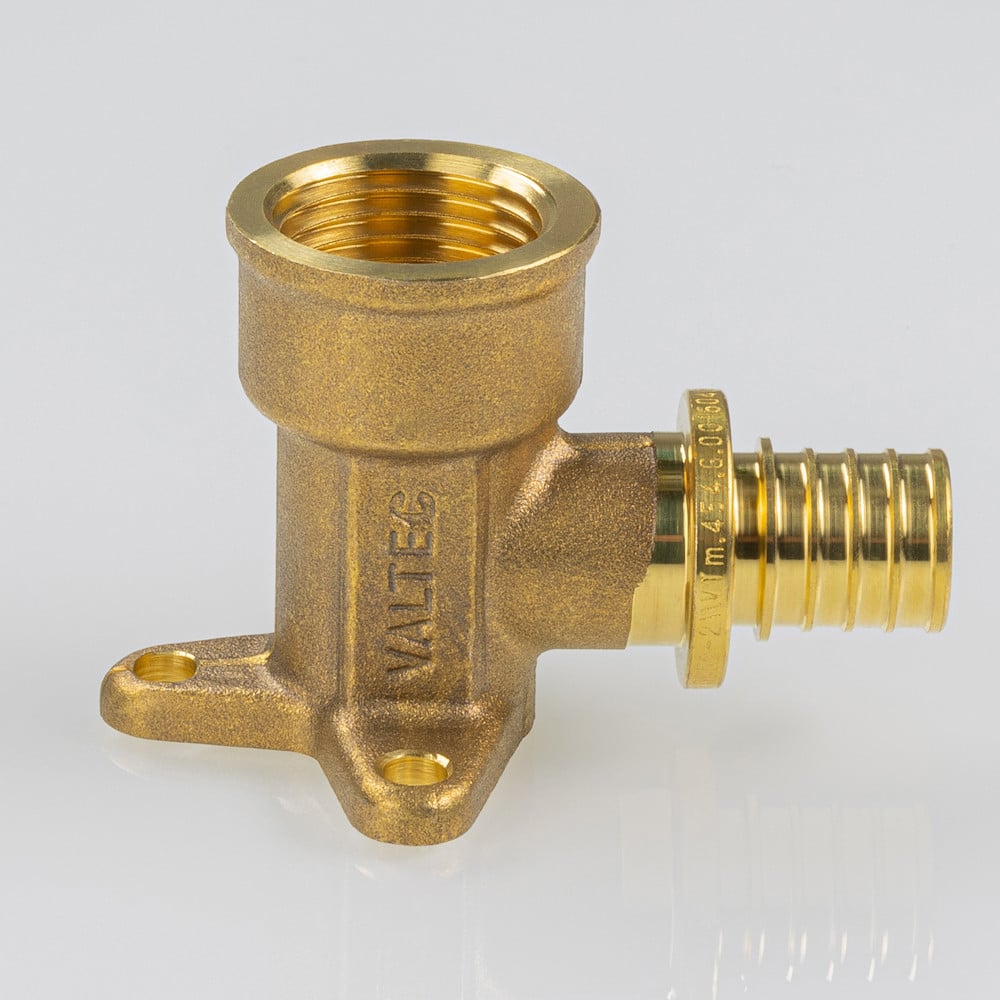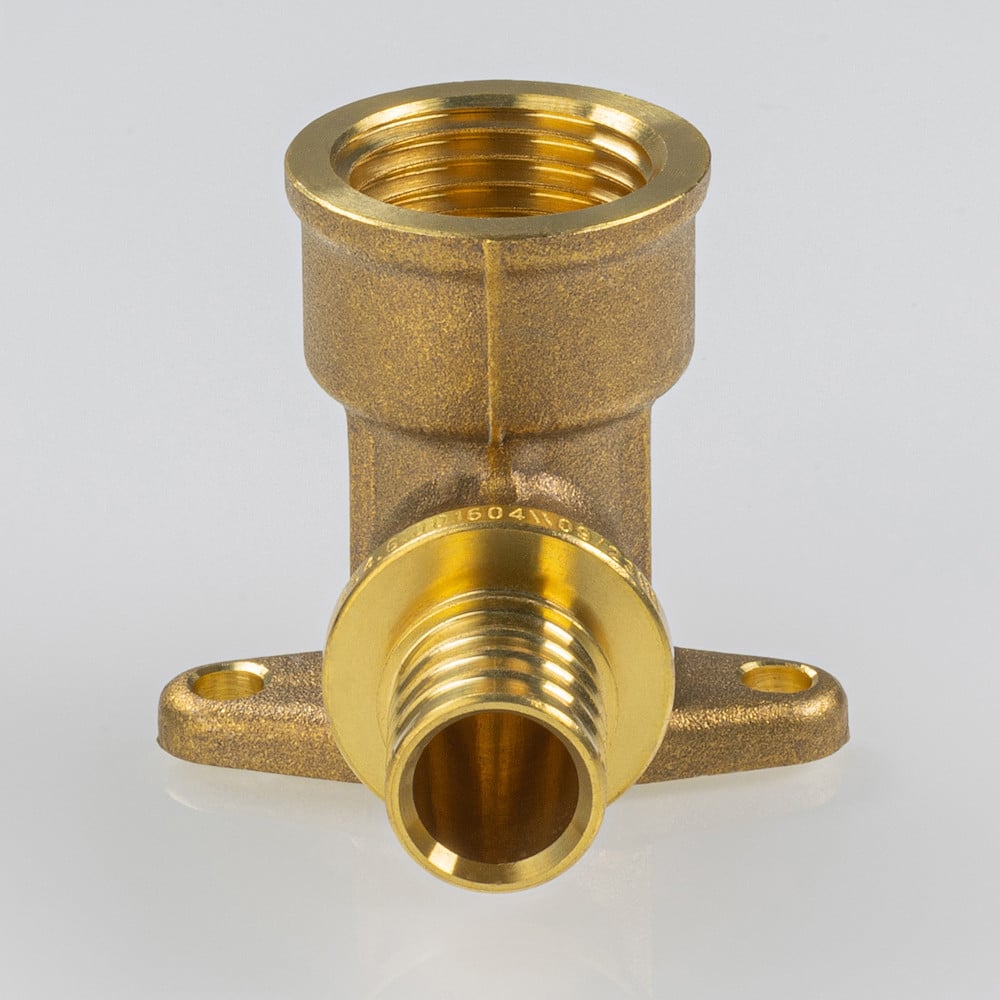 Водорозетка надвижная VTm.454.G – латунный аксиальный фитинг с креплением и внутренней резьбой, который обеспечивает соединение под углом 90° полиэтиленовой трубы и резьбового элемента (в частности, патрубка сантехнического смесителя) монтируемой системы.