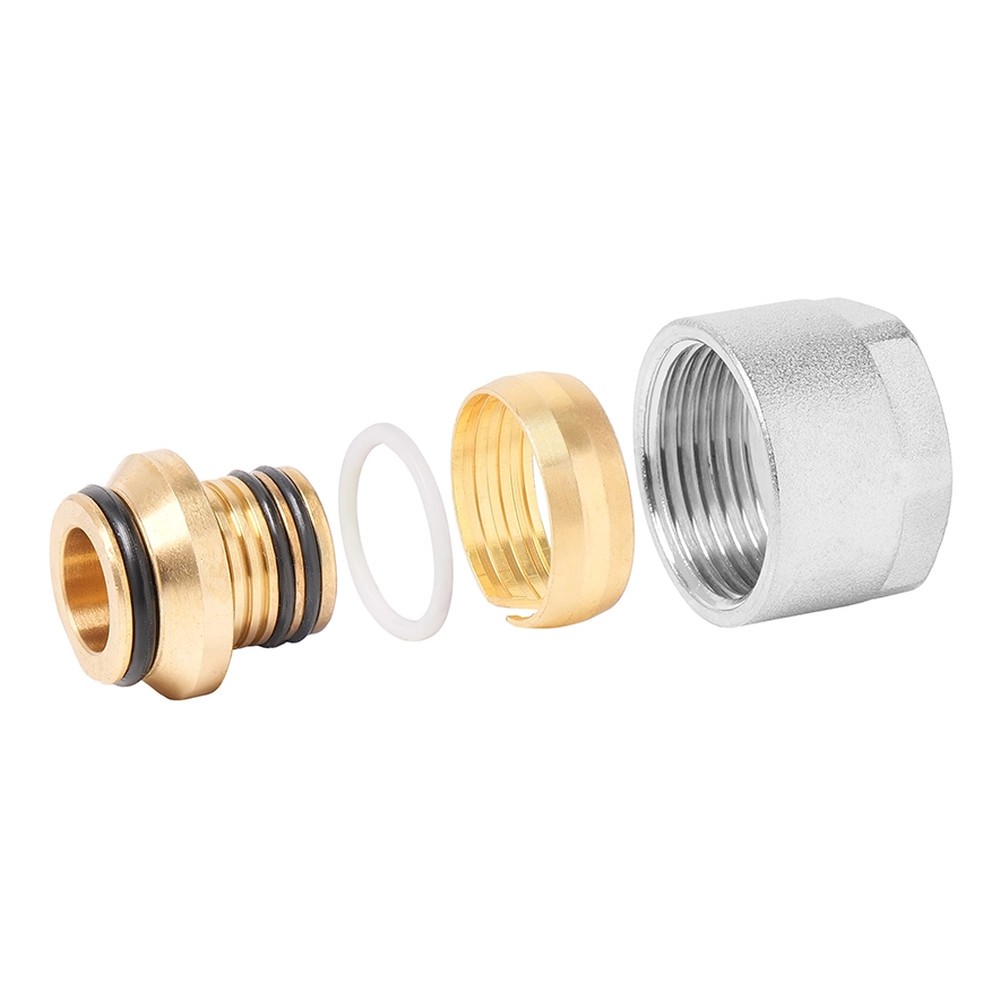 радиатора. Состоит из евроконусного штуцера с уплотнениями (антигальваническая изоляция), накидной гайки 3/4″ и разрезного кольца.