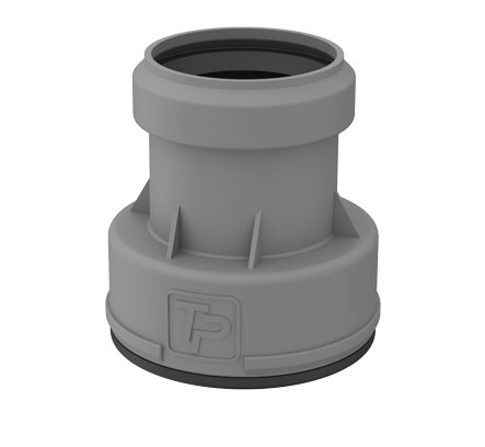 Переходник ТП-9/50 предназначен для соединения канализационного оборудования и труб из ПП, ПВХ или ПЭ с безраструбными чугунными, стальными трубами.
