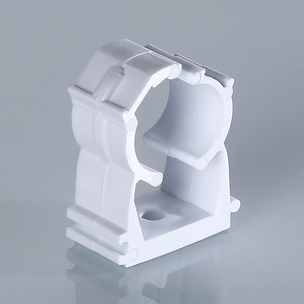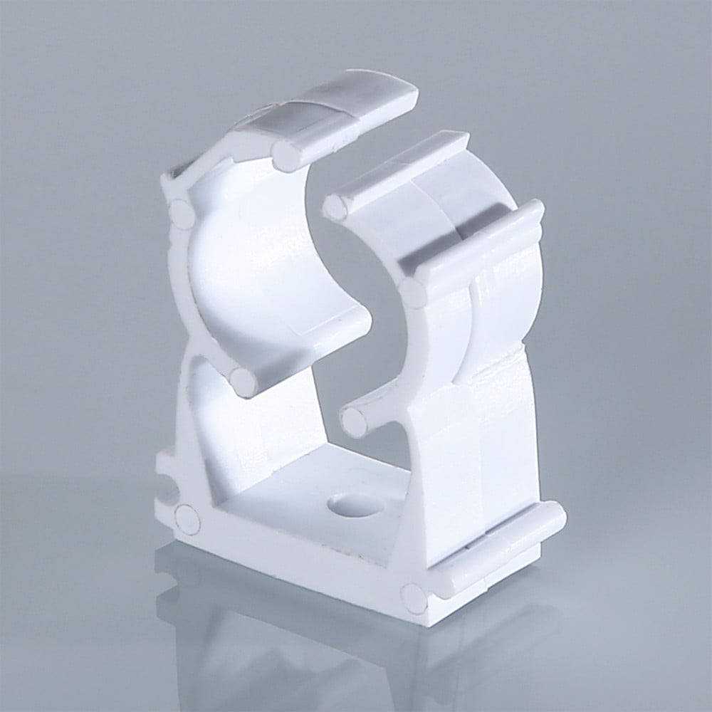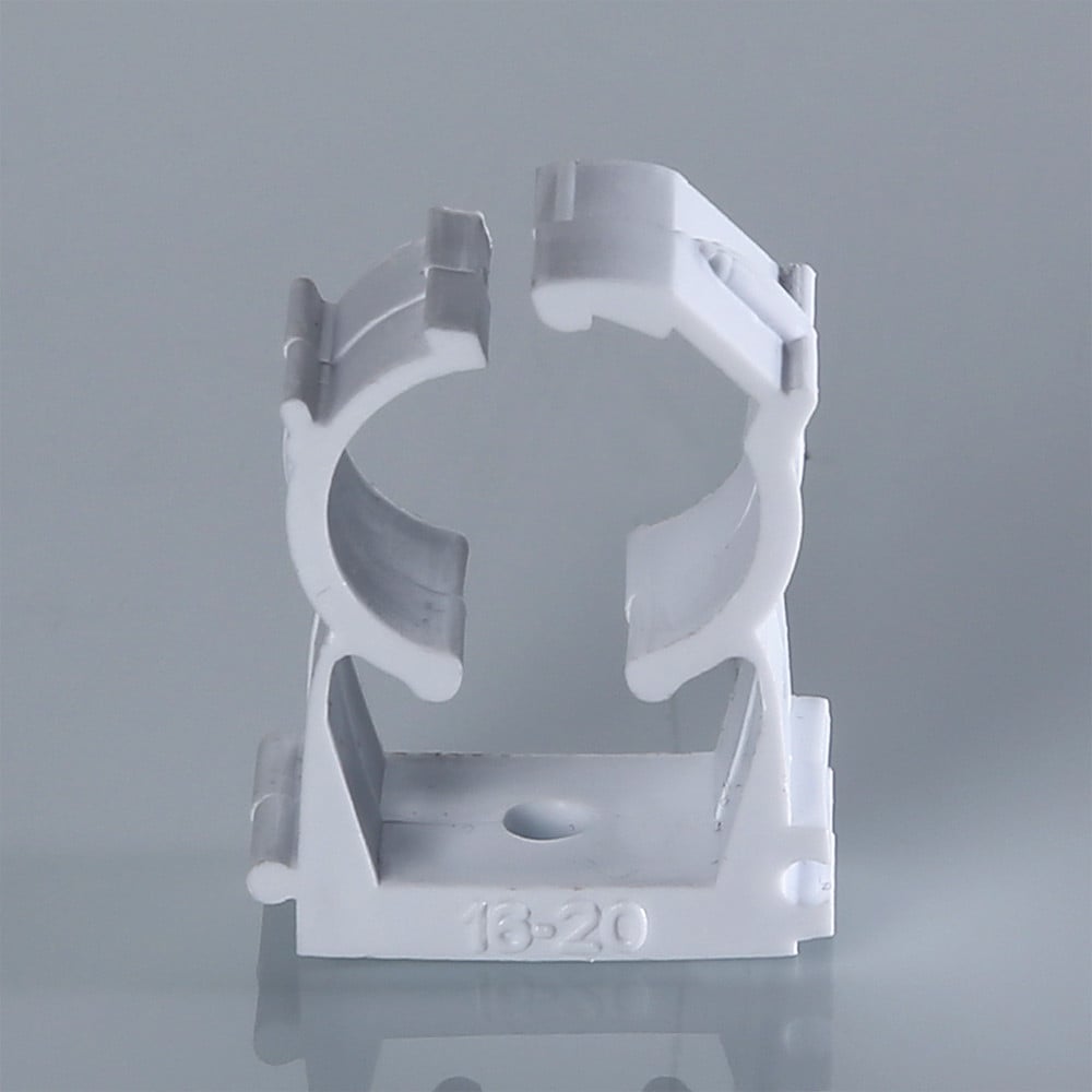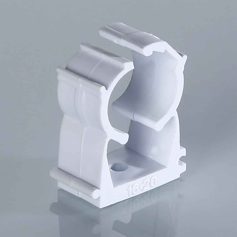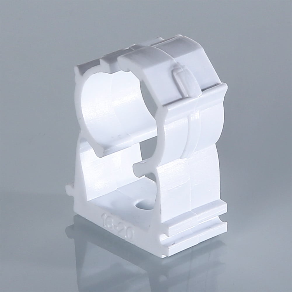 (KP.S.1620) Пластиковый самозащелкивающийся кронштейн для труб (опора для труб с защелкой) выполнен из высококачественного полипропилена. Конструкция крепления обеспечивает простую, легкую и надежную фиксацию трубы наружным диаметром 16–20 мм. Кольцеобразный зажим с замком исключает разъединение трубы и опоры. Гарантируется фиксация трубы во всех плоскостях, в том числе при монтаже в подпотолочном пространстве. Это особенно важно на трубопроводах горячего водоснабжения и отопления, где имеют место значительные тепловые линейные расширения труб, значительные нагрузки на опоры. Кронштейн можно использовать для крепления металлополимерных, полипропиленовых и других труб указанных диаметров.
