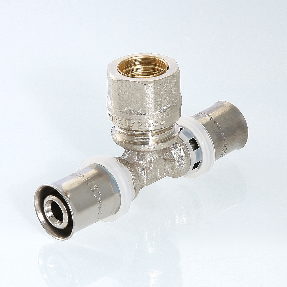 Пресс фитинг VALTEC Тройник переходной 20мм с переходом на обжим 15мм