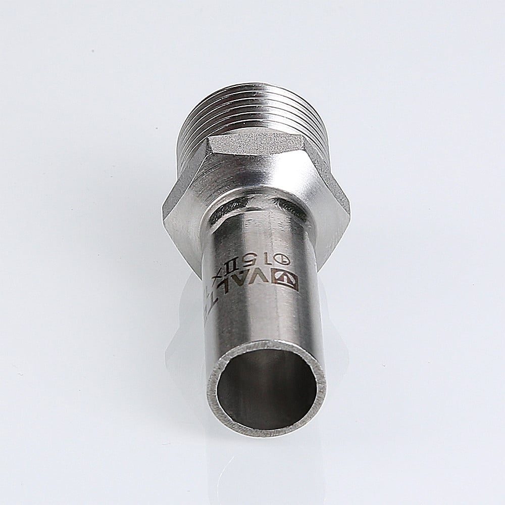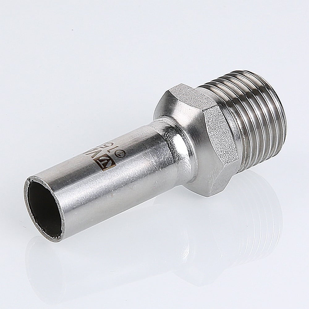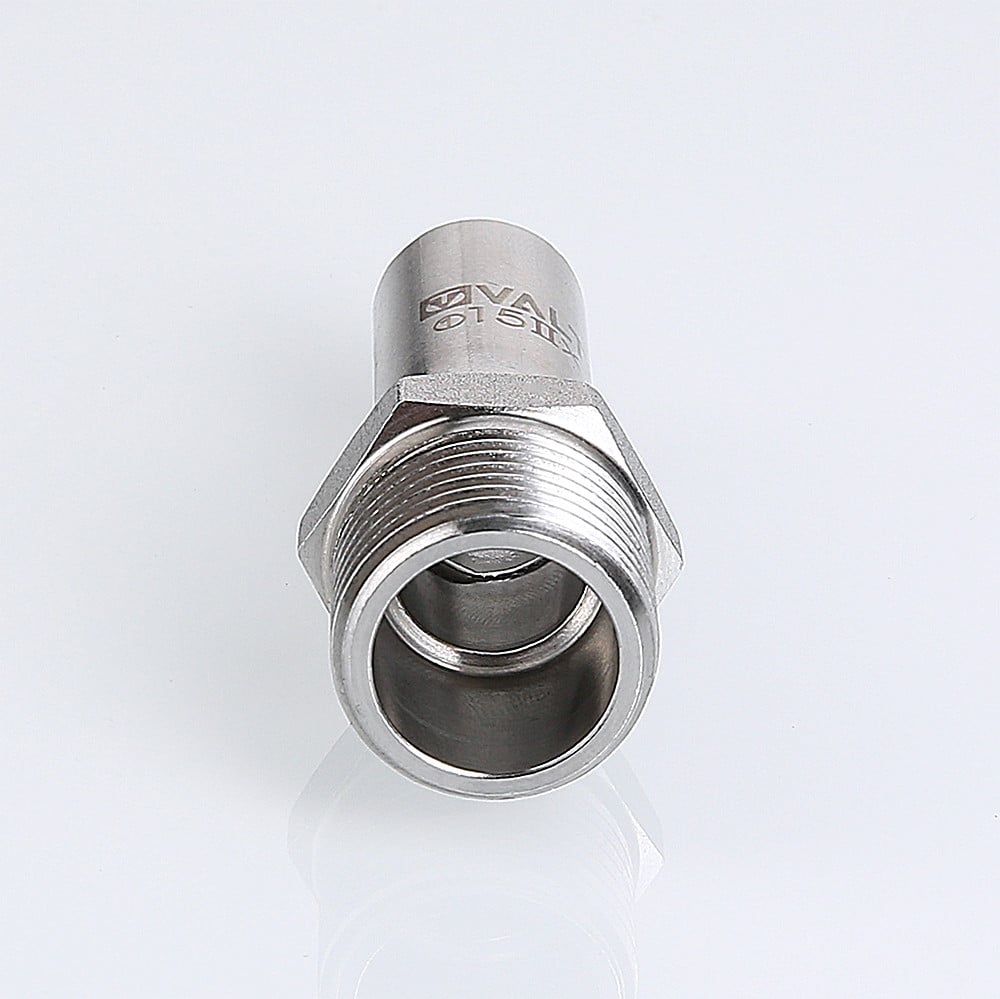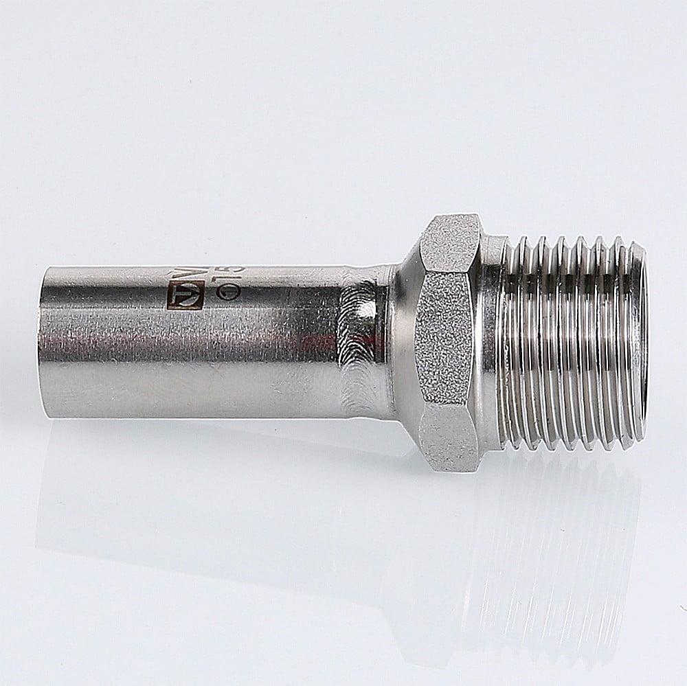 (VTi.906.I) Вставка с наружной резьбой VTi.906.l предназначена для использования совместно с пресс-фитингом системы VALTEC INOX-PRESS при монтаже трубопровода из нержавеющей стали – для перехода с пресс-соединения на резьбовое. Изделие изготовлено из стали AISI 304.