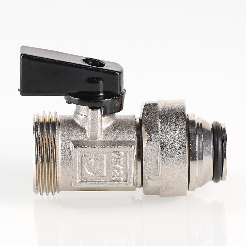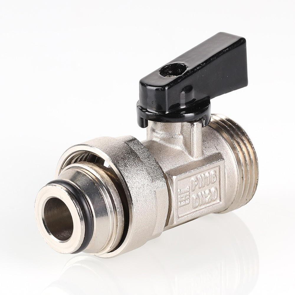 (VTc.720.NE) Латунный никелированный шаровой кран для установки на распределительные коллекторы. Стандарт присоединения – «евроконус»; резьба – внутренняя/наружная. Изделие подойдет для оснащения коллектора VTc.500.NE (преимуществом такого решения будет возможность замены отдельно взятого запорного элемента без замены всего коллектора), а также коллекторов и коллекторных групп VTc.560.NE, VTc.594, VTc.596. В последних трех случаях оснащение коллекторным краном выходов с настроечными (регулировочными) клапанами позволяет перекрывать потоки, не сбивая настроек. Трубы коллекторных петель можно присоединить к крану для коллекторов с помощью типовых фитингов стандарта «евроконус» (VT.4410, VT.4420, VT.4430, VTc.712.E).